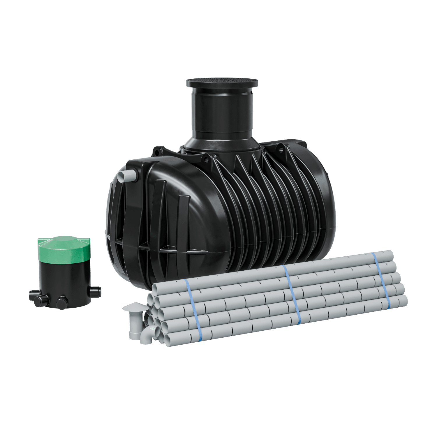 - Connection of the septic tank to the distribution chamber: PVC pipe 100×2.2x2000mm (1 piece), double-socket fitting 110 (1 piece).